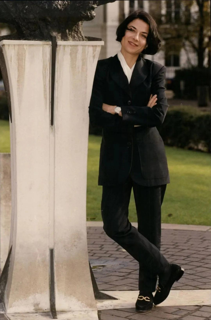 灰色的西装外衣,内部搭配着浅蓝色的衬衫,OD体育app底下穿的是到膝盖的白色铅笔裙,脚上是一对洗得软软的小白鞋。