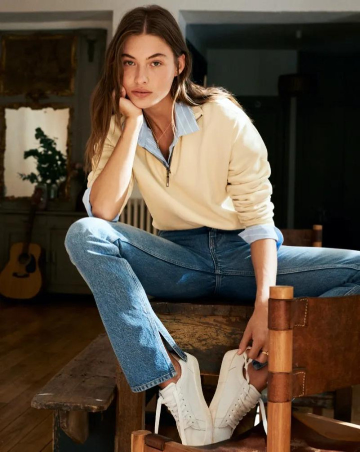牛仔裤配它,是少年未缴还的通行证;小黑裤配它,是成年之后仍保有的白净;白裤配它,整条腿仿佛被光托起——不是显瘦,是显“轻”。